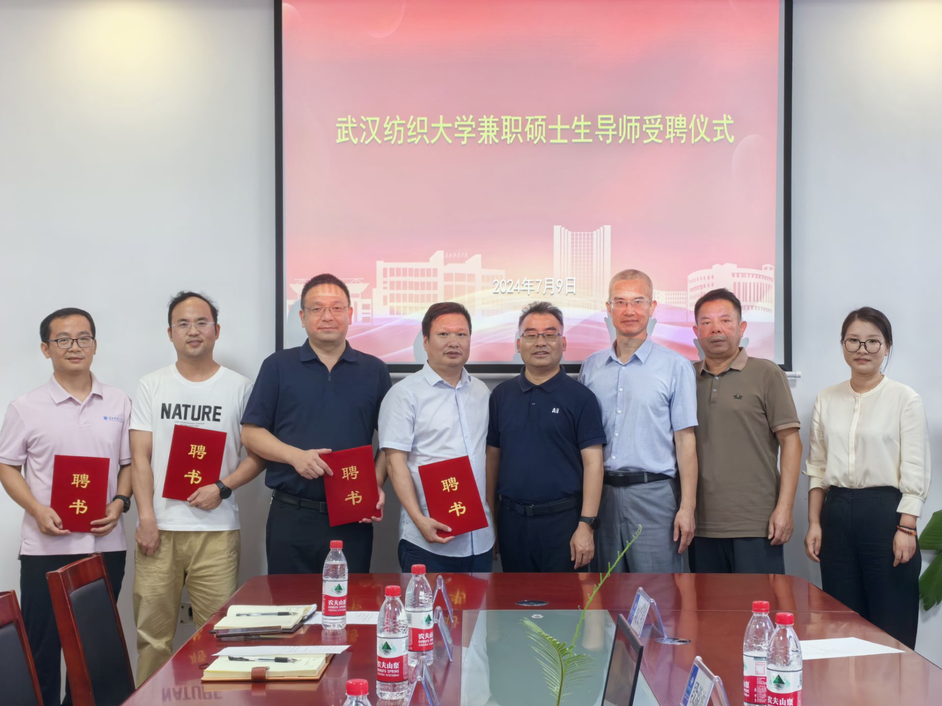 同时,活动还进行了兼职硕士生导师受聘仪式。武汉纺织大学数理科学学院党委书记段溢波教授为我院陈生安教授、吴昭君教授、金凯博士、饶继光博士、方文玉博士颁发武汉纺织大学兼职硕士生导师聘书。这一举措不仅壮大了武汉纺织大学硕士研究生导师队伍,也为两校在科研合作、项目攻关、研究生培养等方面搭建了更加坚实的平台。受聘导师们纷纷表示,将积极履行职责,发挥自身优势,为武汉纺织大学的研究生教育事业贡献智慧和力量。