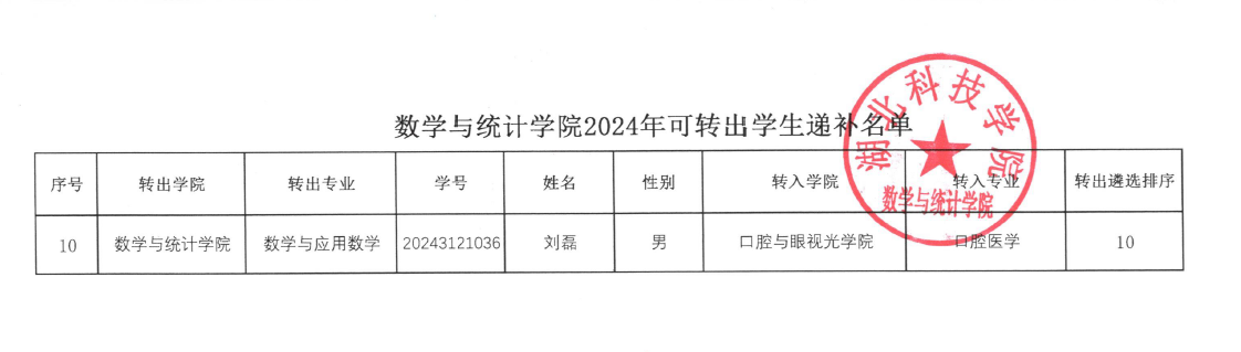 鉴于英国正版365首页数学与应用数学专业申请转出人数较多,该专业2024年招生计划95人,按照10%的比例,可转出人数为9.5人,经教务处同意将原转出计划9人调整为10人,按转出细则排名,将排名第十位的同学进行递补,现予以公示。