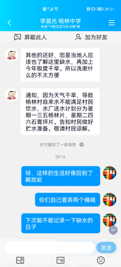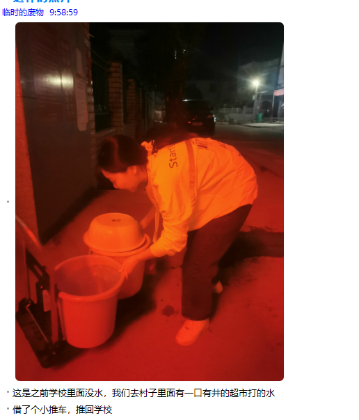 就在写后记的时候,她高兴的发来消息,说终于来水了,她要赶紧接水,不然两天洗不成澡......