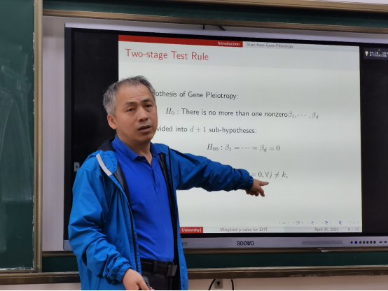 童行伟教授针对基因多效性的检验问题,创造性的提出了互斥性假设检验的加权检验方法。多重互斥检验问题随着检验维数的增加,犯第一类错误的概率会显著增加,童教授运用BIC准则构造检验统计量,并据此提出加权的P值,巧妙的将犯第一类错误的概率控制在较小的范围,从而提高的基因多效性检验的稳健性和准确性。最后,童教授用台风数据对所提出的检验方法进行了实证分析,结果表明该方法效率和精度均很高。