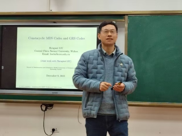 (通讯员:周海针,审稿:金凯)12月9日上午10:00-12:00,华中师范大学刘宏伟教授应邀来我院作了一场题为《Constacyclic MDS Codes and GRS Codes》的学术报告,报告由院长陈生安教授主持,英国正版365首页50余名师生聆听了此次报告会。