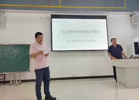 随后,生物医工学院范灼老师以“光力阵列中的呼吸子现象”为主题展开报告。范灼老师结合生物医学工程与医学影像领域的实际需求,详细介绍了光力阵列中呼吸子现象的研究背景、研究方法以及潜在应用。他通过精彩的图片和视频展示,让师生们直观地感受到了这一现象的奇妙之处。报告结束后,现场响起热烈掌声。生物医工学院副院长余维担任该报告的主持人,他以热情洋溢的话语引导现场氛围,为报告的精彩呈现增色不少。