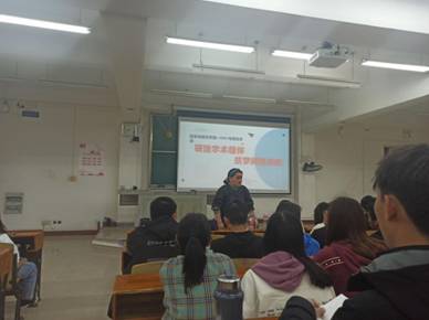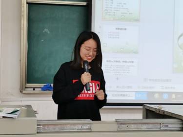 接着是来自17数应班的胡欣欣,她从政治、英语、教育综合、数分高代综合这四门考研科目复习方法为同学们进行了讲解,让同学们明白了如何选择复习资料、如何掌握考点。期间,胡欣欣也通过她身边的同学因为没有一直坚持最后选择再战的故事,告诉同学们考研是一段艰难困苦的旅程,要坚定信念,不要半途而废。