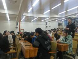 第三位是17双学位班的杨锦,学长告诉同学们在复习前,应要有总体规划,指定好思路及方法,不要盲目的复习。建议同学们在备考中要注意身体健康,不要熬夜学习。