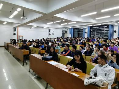 最后17应用统计班的祝兆媚从考研专业选择、各科复习方法以及考研心态历程三个方面为在场同学进行分享。让同学们明确第一志愿的重要性,告诉同学们要坚定自己的信念,要从自身能力和备考情况制定复习方案,她说考研的成功,不仅仅是复习的时间,更是时间,效率,耐力三者的乘积。分享的内容令在座同学受益匪浅。