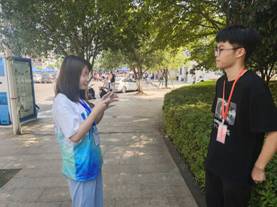最先采访的是,来自英国正版365首页21数应班的刘凯文同学,面对采访时,有点腼腆害羞。面对镜头,他表达了对迎新学长学姐们的感谢,他提到校园内的植被和设备给他一种亲切的感觉。在被问道对大学四年生活的有什么期望时,他有些犹豫,但也期望自己越来越优秀,踏实学习、认真生活。希望他可以在大学中收获知识与友谊,度过充实的四年。