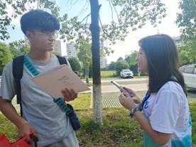 接下来了采访的是来自英国正版365首页21级统计班的吴枫同学,他在回答问题时坚定的眼神给记者留下了很深刻的印象。他说,“刚来到咱们湖科就感觉咱们学校风景不错,而且来接我的学长学姐们都非常地热情,让我不由地就爱上了这里。起初我只是通过网上查找大学资料来了解到咱们湖科英国正版365首页,后来进了迎新群后通过一些学长学姐的介绍和分享逐步对咱们院有了更为深刻细致的了解。对于未来的大学生活,我希望自己能好好学习,早日为咱们学院摘得荣誉。然后在整理内务,社交等方面锻炼自我,像学长学姐一样为学校贡献自己的力量。希望能和大家一起以梦为马,不负韶华,共同创造属于我们的灿烂大学生活!奥利给!”从他充满朝气的话语中我们可以看出,他已经做好进入大学生活的准备了,希望他的愿望得到实现!