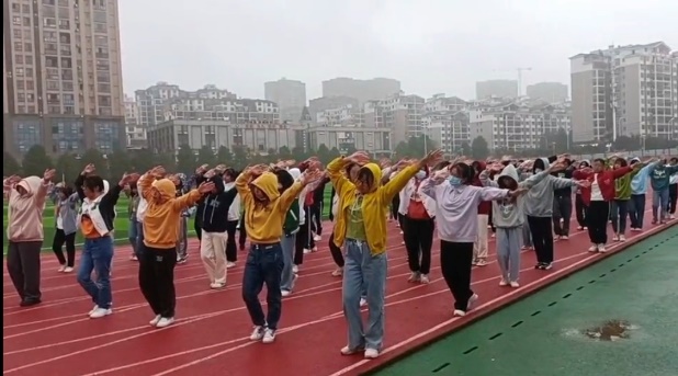 比赛前期,同学们利用空余时间参与广播操舞的排练,努力学习舞蹈动作,互相交流领会动作要领,牢记音乐旋律,踩准音乐节拍,每个动作都尽力做到整齐划一,踏步雄赳赳,动作气昂昂,浑身上下洋溢着青少年的蓬勃朝气和青春活力。