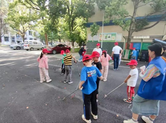 宣讲过后,青辅学堂志愿者为小朋友们分发夹具,垃圾袋,帽子,并与小朋友们共同前往社区进行清洁工作。活动中志愿者们劲头十足,在社区工作人员的带领下捡拾绿化带垃圾,清理小区道路杂物,并将花坛中的塑料袋、杂草、纸屑等进行了细致的清理,用自己的双手体验着劳动的快乐。