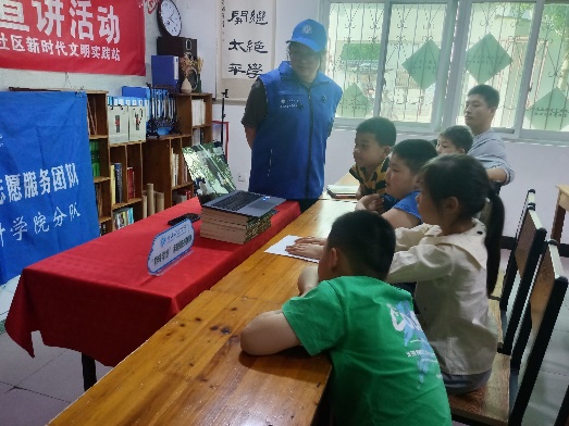 活动期间,志愿者李梦婷以幽默温柔的口吻为小朋友们讲解一个又一个时代楷模精神,积极带动小朋友们参与课堂,调动课堂氛围,小朋友们开动脑筋、集思广益,主动举手回答志愿者的问题。