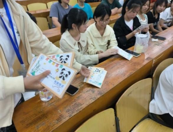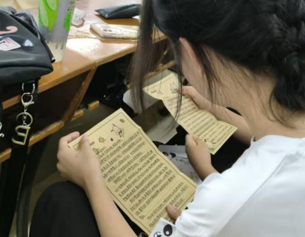 于9月13日晚新生开学典礼时,工作人员负责将信发送至每一位新生手中,新生们收到学长学姐亲手写的信,心里感到暖暖的,纷纷露出了喜悦的笑容,迫不及待地打开信封,认真阅读着手中的信。哪怕只是一张纸一封信,都比寻常意义上的物件有温度的多,弥足珍贵。