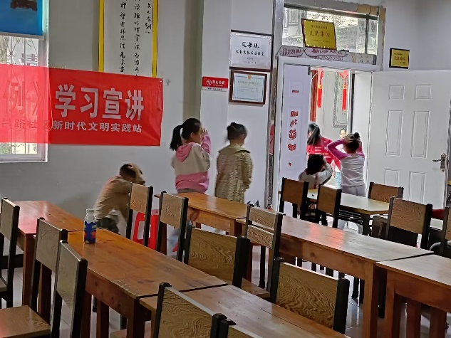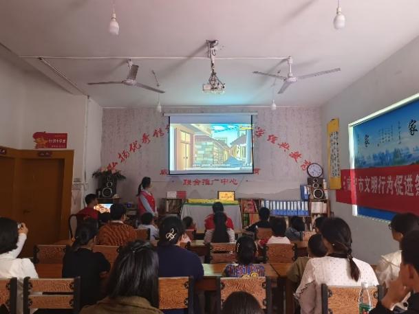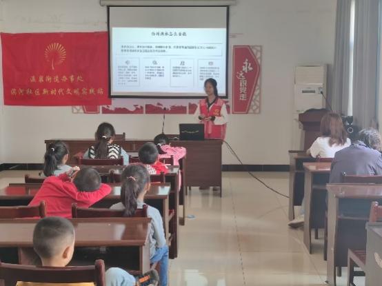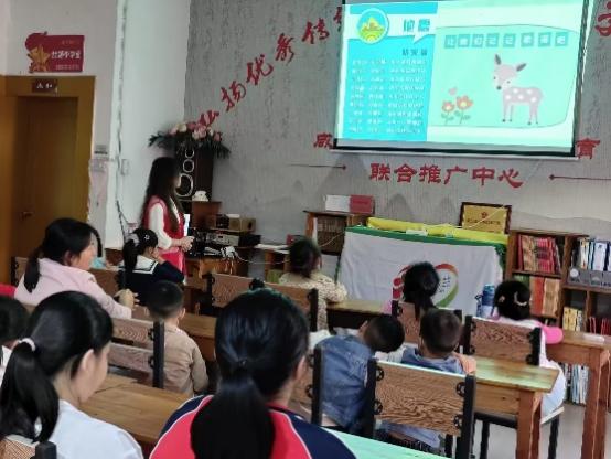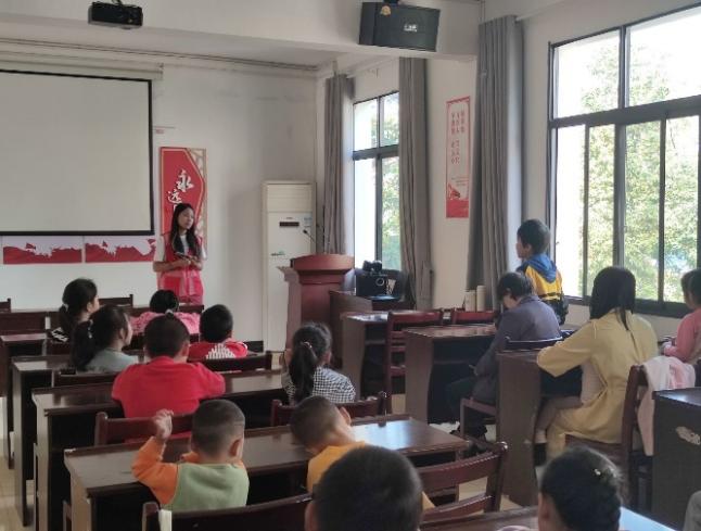 (小朋友们认真地听志愿者们进行主题宣讲)