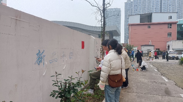 随后,画手们按照各自的样图,紧张有序地开始绘制。起形、上色、精修,每一个步骤都不敢马虎,每一个图形都精益求精。他们手中的画笔时而急速驰骋,时而缓慢移动,时而细细勾勒,一幅幅精美的图案陆续呈现在社区的墙壁上,每一幅墙绘都有着独特的内涵,构筑起一道靓丽的“风景线”。