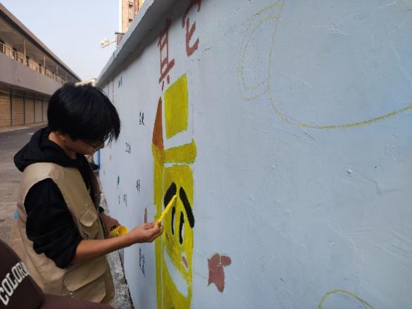 志愿者们按照各自的样图,紧张有序地开始绘制。起形、上色、精修,每一个步骤都不敢马虎,每一个图形都精益求精。他们手中的画笔时而急速驰骋,时而缓慢移动,时而细细勾勒,一幅幅精美的图案陆续呈现在社区的墙壁上,每一幅墙绘都有着独特的内涵,构筑起一道靓丽的“风景线”。