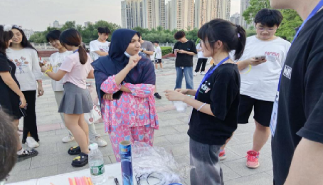 活动开始前,同学们于揽月广场前集合签到,工作人员为参赛同学分发荧光棒和发光头饰,活动负责人为参赛队伍讲解了本次活动的游戏规则以及注意事项,提醒同学们在活动过程中要注意安全,随后主持人倒数三秒宣布活动开始,各队伍跑向游戏点位进行比拼。