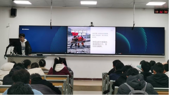 23统计学班班长结合“北斗卫星定位搜救”等案例,向同学们详细讲解了新时代中国精神的具体体现。在科技日新月异的今天,北斗卫星导航系统筹“大国重器”在抗震救灾中发挥着至关重要的作用,为救援工作提供了精准高效的科技支撑。
