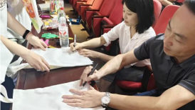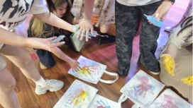 联欢会接近尾声时,学生会为学长学姐们送上了精心准备的纪念品,用颜料将手掌按在帆布包上留作纪念。希望这份礼物能成为他们在学生会美好时光的见证。学长学姐们也纷纷发表感言,表达对学院、对学生会以及对学弟学妹们的感激与祝福。他们鼓励学弟学妹们在今后的工作中勇于担当、积极创新,将学生会建设得越来越好。