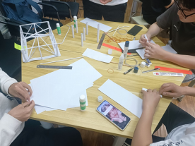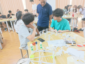 比赛期间,各组参赛选手拼尽全力,思维火花的碰撞在现场随处可见。经过规划和设计,参赛选手们充分发挥自身创意,团结合作,积极讨论,在历经2个小时的设计制作后,一座座桥型各异、造型优美的纸桥映入眼帘。