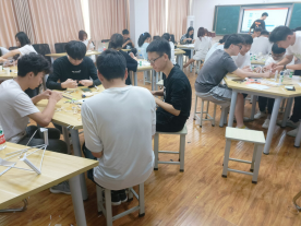 尽奇思妙想之缜密心智,融创新胆识于高超技艺。在主持人短暂的介绍比赛要求和作品评估后,参赛选手们进入到比赛场地、找到自己团队的工位。A4纸张、固液胶和小皮筋早已恭候多时,只待选手们巧夺天工、精心剪裁。折叠卷棒、刷胶编绳、拼接搭建……时间一分一秒的过去,一份份凝结着选手们心血与智慧的作品也逐渐呈现出来。