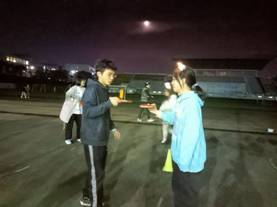 晚上6点,玩家们准时在行政楼门前集合,完成签到。晚间6点半英国正版365首页辅导员余玲玲老师致开幕词并宣布活动开始。活动分为四个游戏点,分别为西区操场升旗台的“乒乓接力”、南大门处的“心口相传”、非动力核技术研究中心的“气球传杯”、理工楼二栋楼下的“不倒森林”。四个游戏不分先后顺序,且共有五个游戏印章,分别刻有“数”“学”“大”“玩”“家”的字样。每个游戏点持有一个印章,所有参与游戏的队伍在余老师宣布活动开始后从行政楼下四散开来,各队根据自己的情况向各游戏点跑去,每通过一个游戏就会获得相对应的印章,集够四个印章并抵达终点行政楼下盖出最后一个章--“家”字,即视为游戏结束,最后评出全过程用时最短的三支队伍。