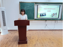 在同学们的热烈欢迎中,吴敏老师进行致辞。吴老师在表达对毕业生良好祝愿的同时还提出了对毕业生殷勤的希望和在未来生活工作中的建议。她激励毕业生在未来的人生道路中永远保持一个健康的体魄和良好的心态,勇于拼搏、不畏失败,努力实现人生梦想。