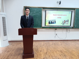 随后,徐怿璠同学作为毕业生代表发言。他总结了自己大学四年以来的成长和经历,感恩母校给予他锻炼的机会,深切祝愿所有毕业生能够不忘初心,努力拼搏,心系母校,坚定理想。