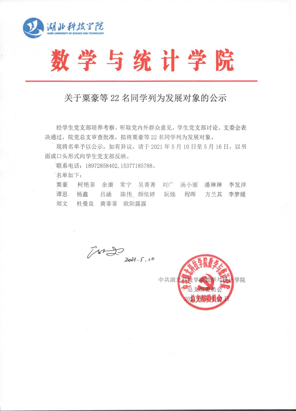 上一条:关于吸收粟豪等22名同学为中共预备党员的公示