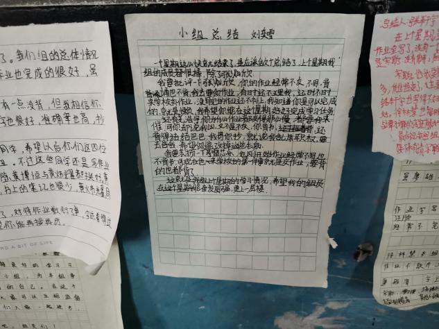 时间过得很快,一下子就到了实习的第九周,我意识到做一名好老师的确很难,但是做好一位班主任更难。班主任不仅教学工作复杂而又繁琐,还要管理好整个集体,提高整体教学水平,同时还要顾及班中每一名学生,不能让一名学生落伍。我的指导老师她不仅是一位数学老师,同时也是一位班主任。在这一周我发现她对管理班级有自己的一个特殊小方法,她先选出几位小组长,然后让这几位小组长管理他们的组员,包括但不仅包括组员的学习情况,还有一些老师没注意到的组员的表现情况。我看到他们贴在后面黑板上的总结书,感觉每个小组长都又负责又可爱!