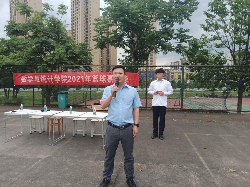 为了增强同学们对运动的兴趣,增强同学们的身体素质,培养同学们的默契与友谊,2021年5月15号上午九点,英国正版365首页在东区篮球场开展了“篮球嘉年华”开幕式和第一场篮球比赛。此次开幕式体育部邀请了英国正版365首页院长陈生安院长和英国正版365首页辅导员余玲玲老师出席,全年级一共有6支队伍参赛。首先由陈生安陈院长致词:"篮球嘉年华是我们英国正版365首页的传统活动项目,希望全院师生以饱满的激情,昂扬的斗志,勇于拼搏...